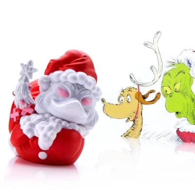 This White Grinch Book Santa Costume duck is a must-have for fans of Dr Seuss collectables or those who are fans of the How the Grinch Stole Christmas movie staring Jim Carrey. Only available on Amazon, this exclusive limited edition is a rare collectible perfect for Grinch fans, Christmas gifts or those who need for festive Christmas décor or Grinch Christmas decorations. Collect characters from movies, games, books, and TV shows, all reimagined as quirky cosplaying duck figures Packaged in the iconic stackable bathtub display case with official Dr Seuss branding, approx. 9 cm tall, including christmas tree outside packaging, a perfect addition to your christmas decor. Fun, unique collectible ducks that make great display pieces, perfect for gifting or adding a festive twist to jeep ducking or even as a grinch tree topper., Manufacturer: Rubber Road Ltd
