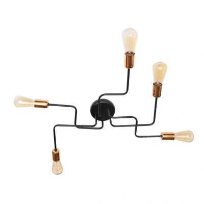 Tube Multi Arm Semi Flush Ceiling Light Black, Copper 64cm