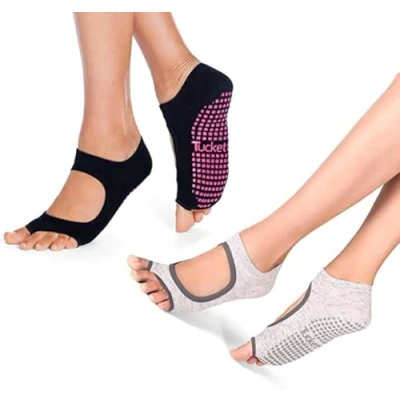Tucketts Anklet Toeless Non slip Grip Socks Cotton for Yoga, Barre, Pilates,...