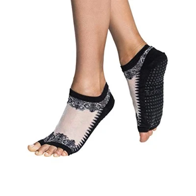 Open Toe Grip Socks Benefits: Tucketts Flow toeless socks enhance your foot-brain connection for better stability and grounding. Experience confidence and support with every step! Perfect for yoga pilates, barre, ballet, dance, and home wear. Enhanced Stability and Balance: Experience the freedom of movement with lightweight fabric, free toes, and superior grips that support postural alignment and dynamic movements, giving you a natural, barefoot sensation. Comfort Meets Style: Crafted in Colombia, our socks feature a soft blend of cotton, nylon, and spandex, ensuring moisture-wicking and slip-resistant properties. Available in an array of stylish patterns and colors to match your personality Eco-Friendly Practices: Committed to minimal environmental impact, Tucketts uses tree-free packaging and recycled yarns. We continuously improve our sustainable processes to support a healthier planet. Perfect Fit, Effortless Wear: Tucketts Flow Socks offer a snug, easy-to-wear fit in sizes Small/Medium (US 6-9) and Large/X-Large (US 10+), perfect for everyday comfort without the hassle of individual toe sleeves.