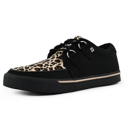 T.U.K. Vegan Creeper Sneaker Mens and Womens Sneakers Colour Black Canvas & Leopard Print Punk, Goth Rocker Style Leather Lace Up Shoes UK Size Men 11 / Women 12
