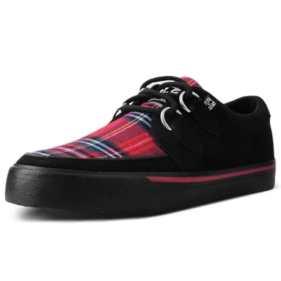 T.U.K. Vegan Creeper Sneaker Mens and Womens Sneakers Colour Black & Tartan Suede Punk, Goth Rocker Style Leather Lace Up Shoes UK Size Men 3 / Women 4