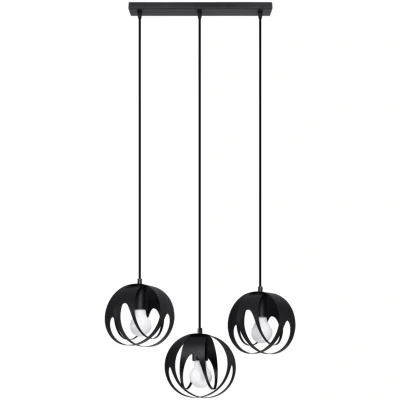 General description Feel the breath of a unique avant-garde in your interiors with TULOS lamps. Their characteristic but extremely thin casing creates a unique atmosphere even during the day. These lamps integrate perfectly with elegant compositions, adding splendor to the interior decor. The TULOS collection offers great variety and fascinates with its sophisticated style, including both ceiling lamps and pendant lamps with 1 or 3 light points suspended at different heights. Lighting designed in this way guarantees a decorative effect in any interior. Technical specifications Light source: E27, 3x max 15W LED Voltage: ~230V Frequency: 50Hz IP rating: IP20 Protection class: I Dimensions: 50/16/117 cm Lampshade dimensions: 16/18 cm Material: steel Color: black Other information Light source is not included.