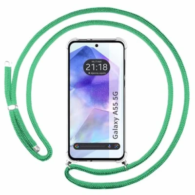 Transparent anti-shock case with water green pendant for Samsung Galaxy A55 5G. The case with lanyard is the perfect accessory to carry your phone always at hand, you will always have your mobile phone on it and you can access it quickly and easily. It is the ideal complement to keep you connected at all times without having to take your smartphone out of your bag or pocket. In addition to complementing your style, you will have the guarantee that your phone will always be protected because the case is shockproof, formed by a combination of flexible gel very resistant on the edges and rigid polycarbonate in the central body. It is a case that will protect your device against bumps and scratches for a long time. It fits your phone perfectly and allows full access to controls and ports without removing the case. Case made with the best materials, brand new product and packed in its original blister pack.