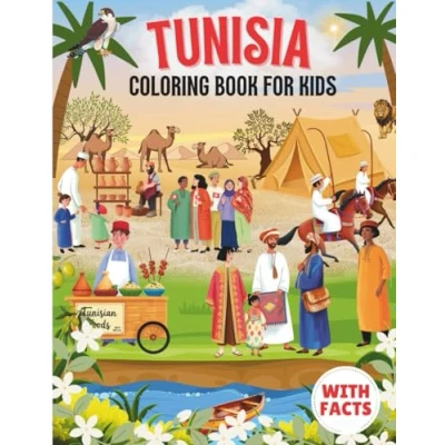 Tunisia coloring book for kids with facts