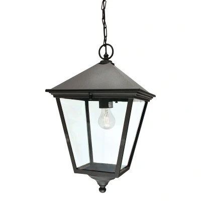 A large traditional black chain lantern with impressive durability. Featuring black polyester powder coating, this robust fitting is provided with clear polycarbonate lenses. Also available in this range; Wall Lantern, Wall Lantern, Pedestal Lantern, Twin Lamp Post, and Lamp Post.