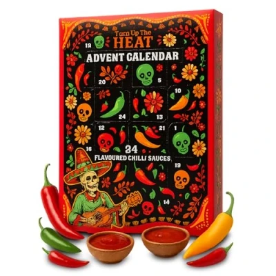 Hot Sauce Gift Set: Unleash festive fire with 24 x 18ml bottles packed into this cheeky hot sauce advent calendar. From mild lime to scorching habanero, every door delivers a sizzling surprise to light up December (and your taste buds) Spice Gift Set: Includes 8 flaming favourites like jalapeno sauce, chipotle hot sauce, and garlic hot sauce. Three of each for a perfectly balanced spicy sauces gift set that’ll warm your belly and tickle your sense of adventure Mens Advent Calendar: It’s not socks or aftershave – it’s the food advent calendar he didn’t know he needed. The only countdown where he gets hotter by the day (and maybe needs a glass of milk by door 12) Foodie Gift: Searching for the ultimate cooking gifts for men or dad advent calendar? You’ve found it. This cooking gift sets essential is for spice nerds, hot pepper sauce fiends and grown-ups who still love surprises – and sweating Calendar Christmas: Make it a merry and mouth-burning calendar Christmas with this hilarious chilli sauce gift set. Great for gifting and bringing the heat to the holidays Advent Calendar Includes: 3x 18ml each of Mexican Style Hot Sauce; Green Chilli Sauce; Jalapeno Hot Sauce; Habanero Hot Sauce; chipotle Hot Sauce; Lime Hot Sauce; Garlic Hot Sauce; Original Hot Sauce