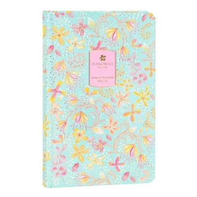 TURNOWSKY 2025 2026 Weekly Planner 13 Months Medium University for Students and Teachers with Bookmark, Hardcover Flower Graphics, 224 Coloured Pages, 11.8 x 18 cm, Green