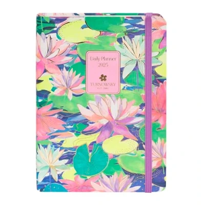 Turnowsky Mini 2025 12 Month Daily Diary with Elastic Band and Metal Cutting Bookmark for Work University, 352 Coloured Printed Pages, 11 x 15.3 h cm, Water Lilies