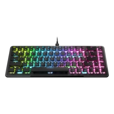 65% mini format factor with arrow keys. Optical Titanium II switches with ultra-fast linear actuation Long service life of 200 million keystrokes. Pre-oiled key stabilisers for smooth and stable keystrokes 30 smart keys with their own LED indicate when secondary functions are active. On-board memory for up to 5 profiles Anodized aluminum plate for added durability | Cross shaped shafts with compatibility with other manufacturers' keycaps VIBRANT AIMO RGB LIGHTING | Detachable USB-C cable for easy storage and customization, Platforms: Windows