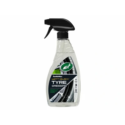 ManoManoGeneral description Turtle Wax Wet 'n' Black Tyre Dressing is a long-lasting deep black tyre shine formulated with 100% silicone and solvent, ensuring no water is used. It provides a quick drying time, allowing the vehicle to be ready for driving immediately without any tyre sling. The application process is straightforward; simply spray on and walk away. Technical specifications Volume: 500ml