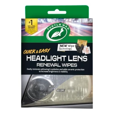 RESTORES HEADLIGHT CLARITY: Over time, headlights become cloudy, oxidized, and yellowed. Turtle Wax Headlight Lens Renewal Wipes provide a fast, effective way to restore clarity and improve the appearance of dull, foggy headlights. BOOSTS ILLUMINATION & VISIBILITY: By removing haze and oxidation, these wipes help improve light output and clarity, enhancing night-time driving visibility and overall road safety. SIMPLE TWO-STEP SYSTEM: Each pack includes precision Renew & Restore wipes to remove oxidation, no tools, drills, or complicated kits required. LONG-LASTING PROTECTION: The Ceramic Acrylic Wipe lays down a durable protective coating that helps shield headlights from UV damage and future yellowing, keeping them clearer for longer. HELPS AVOID MOT FAILURES: Cloudy headlights can lead to failed MOT tests. Restore your lenses quickly and affordably to help prevent unnecessary re-tests and costly headlight replacements. TURTLE TIP: Don’t rush the process. Best results may take up to 30 minutes of treatment depending on the level of oxidation. Clear, bright headlights are worth the effort.
