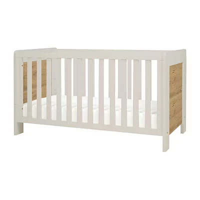 Tutti Bambini Alba Baby Cot Bed 3 in 1 Wooden Crib, Toddler & Day Bed, Convertible Adjustable Base, From Birth to 6 Years, White (140 cm x 70 cm) Sand/Oak
