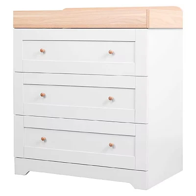 SIMPLE & CLASSIC DESIGN: This statement dresser embodies care and attention to detail, from the sturdy construction to details like the clean finish of the paint and classic minimal design. CHEST CHANGER TOP: The dresser includes a changing top which makes changing easier without using extra space in the room, maximising the space for your nursery. SMART STORAGE: The Rio chest changer offers three large drawers, perfect for organising all your baby’s essentials, all featuring a soft-close mechanism which minimises noise. CLEANING & SAFETY: Wipe clean with a soft cloth and mild detergent. Changer is suitable for use from birth up to approximately 15kg. Assembly time is approximately 45 minutes with 2 adults. CHOOSE FROM OUR COLLECTION: Available as part of matching Rio nursery furniture set including cot bed and wardrobe.