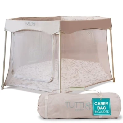 Tutti Bambini Baby Playpen Foldable for and Toddlers with Mesh Walls, Zip Door, Floor Mat & Travel Bag, 135 x 75 cm (Mushroom) New 2025 Version