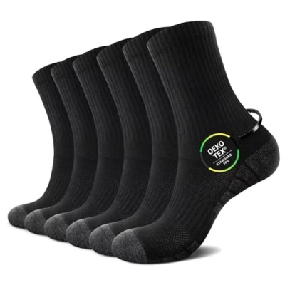 TUUHAW Black Socks Womens 4 7 Cotton Running Sports Hiking Ladies Sock Golf Cycling Gym Riding Tennis Basketball Women Cushioned Anti Blister 6 Pairs Winter Breathable Wicking