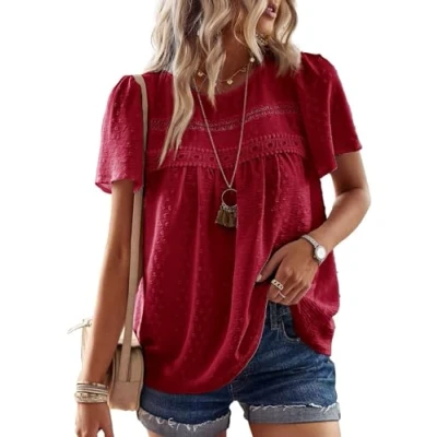 TUUHAW women's crew neck crochet lace boho top is crafted from premium-quality fabric that feels soft and lightweight against the skin. It's designed for all-day comfort while keeping you stylish. Features:This top features a classic crew neck, solid colour design, short sleeves, delicate crochet lace edges, and charming pom pom Swiss dot detailing. Its loose fit offers a relaxed silhouette that enhances your energy and style. Styling Options:This versatile blouse can be effortlessly paired with a range of outfits. Team it with your favourite coats, jackets, jeans, denim shorts, or skirts. Whether you opt for casual sneakers or chic heels, this top is perfect for creating a look you'll love all year round. Occasion:Ideal for everyday wear, this casual lace crochet shirt is suitable for various occasions, including outdoor adventures, shopping trips, dates, or lounging at home. It transitions seamlessly through Spring, Summer, Fall, and Winter. Size Guide:Please consult the Size Chart before placing your order. For best care, we recommend hand or machine washing, hanging to dry, and avoiding bleach to keep your top looking fresh.
