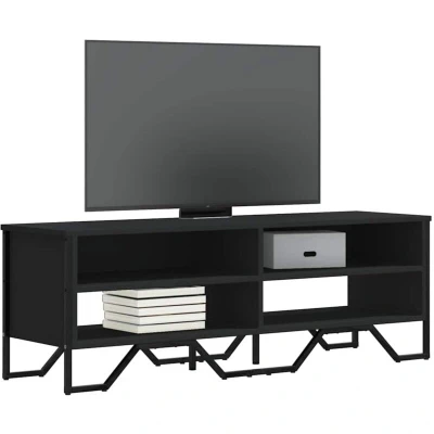 ManoManoGeneral description This TV cabinet with ample storage space is a practical and eye-catching addition to your living room or bedroom. It provides a modern design that complements various interior styles while keeping your space organized. Technical specifications Colour: Black Material: Engineered wood, metal Dimensions: 122 x 34 x 41 cm (W x D x H) Maximum load capacity (total): 60 kg Assembly required: Yes Usage This modern TV stand is ideal for keeping your magazines, books, DVDs, and multimedia devices well-organized and within reach. The sturdy top is perfect for placing your TV, stereo systems, or decorative items like vases or potted plants. Other information