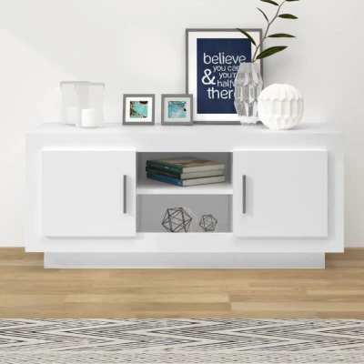 General description This trendy TV cabinet, featuring a sleek and stylish design, is a decorative and practical addition to your room decor. The engineered wood is of exceptional quality, providing strength, stability, and moisture resistance. The compartments and shelves allow you to keep your DVD player, game console, streaming device, and media carriers well-organized. It is easy to clean with a damp cloth. Technical specifications Colour: White Material: Engineered wood Dimensions: 102 x 35 x 45 cm (W x D x H) Assembly required: Yes SKU: 811790 Other information