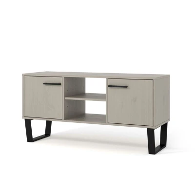 Tv Stand Grey Living Room Furniture Solid Wood Metal Legs Open Shelving Storage