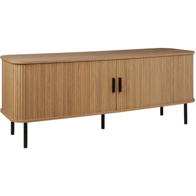 TV Stand Retro Sliding Cabinet Door Cable Management MDF Metal Legs Light Wood Bradley