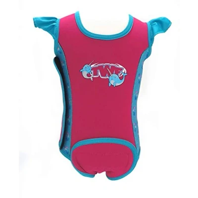 2 5mm Neoprene keeps baby warmer in the water for longer Opens flat with Velcro fastenings to aid a quick and easy change Offers protection from the sun (UPF 50+) Increases buoyancy in the water providing a safer swimming experience