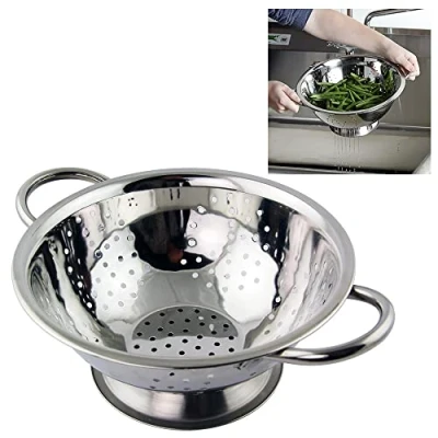 Twin Handled Colander Pasta Drainer, Wash Fruit & Veg, Steamer Basket, Strainer Sieve Serve (24cm Handle Colander)