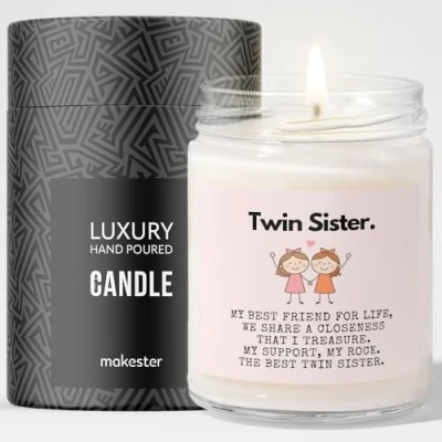 Twin Sister Gifts Soy Wax Vanilla, Jasmine, Sugared Almond Makester