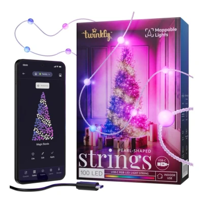 Currys- These Twinkly Candies string lights bring sparkle to your space with 100 pearl-shaped RGB LEDs- Powered by USB-C, you can just plug them into a power bank, laptop or smart home hub- With the Twinkly app, you can design, tweak and sync your lights to match your mood or your playlist- Its mapping tech uses your phone camera to place effects precisely, so every sparkle lands just right- Link up with Razer Chroma RGB or OMEN Light Studio for reactive lighting that responds to your every move- Compatible with Alexa, Google Assistant, and Apple HomeKit, you can control your lighting handsfree