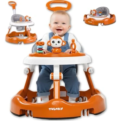 Twinky® Baby Walker Retractable for Boys & Girls 6 Months+ with Play Set, Music Floor Mat Sturdy Walking Aid Push Handle 4 Adjustable Height Positions