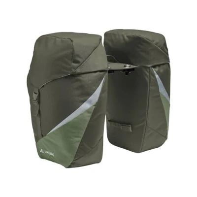 Practical double rear bike bag for touring riders Throw principle, pockets are connected to each other With UniKlip 2 mounting system Climate neutral; environmentally friendly made from predominantly recycled materials