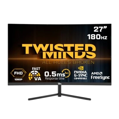 Twisted Minds 27 Inch Display Fast VA Gaming Monitor 1920 x 1080 FHD Resolution, 180 Hz Refresh Rate, 16:9 Aspect Ratio, 0.5ms Response Time Black (TM27FHD180VA)