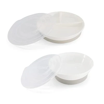 Twistshake Baby Tableware Set Divided Plate + Bowl BPA Free Feeding and Food Training Kit for Kids White