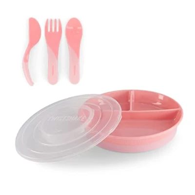 Twistshake Baby Tableware Set Divided Plate + Cultery 6m+ BPA Free Food Training Kit for Kids Pink