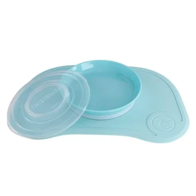 Twistshake Click Mat Baby Tableware Set Suction plate + Placemat (38x25) BPA Free Weaning and Food Training 6 Month+ feeding Blue