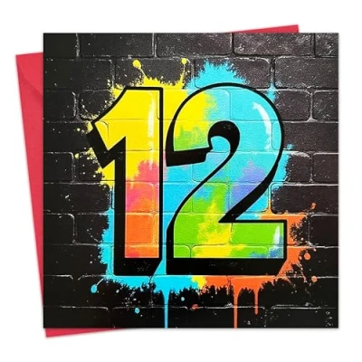 BLANK INSIDE : This card is blank inside for your own personal message. FRONT : Message on the front of the card reads - 12 SIZE : This fabulous greeting card is 15.5 x 15.5 cm and the envelope is perfectly sized at 16 x 16 cm. HIGH QUALITY : This card is professionally printed on thick board and also comes with a premium Red envelope. UK PRODUCT : Designed, printed and manufactured exclusively in the UK. TWIZLER : Small, family-run, UK-based business. SHIPPING : Express options available on checkout. PROTECTION : Each card comes individually cello wrapped for extra protection. SEND TO : Ideal for friend, son, brother, tween, or anyone celebrating their 12th birthday.