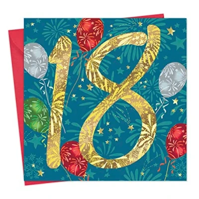 BLANK INSIDE : This card is blank inside so you can create your own personal message. FRONT : Message on the front of the card reads - 18 SIZE : This fabulous greeting card is 15.5 x 15.5 cm and the envelope is perfectly sized at 16 x 16 cm. HIGH QUALITY : Our cards are printed on high quality card stock and also comes with a premium COLOURED envelope. UK PRODUCT : Designed, printed and manufactured exclusively in the UK. TWIZLER : Small, family-run, UK-based business. SHIPPING : Express options available on checkout. PROTECTION : Each card comes individually cello wrapped for extra protection. SEND TO : This card is suitable for a variety of recipients including son, daughter, brother, sister, grandson, granddaughter, nephew, niece, godson, goddaughter, cousin, teenager, friend or anyone reaching this birthday milestone.