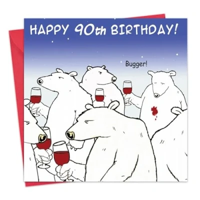 Twizler Funny Birthday Card with Polar Bear and Wine 90th Humour Age 90
