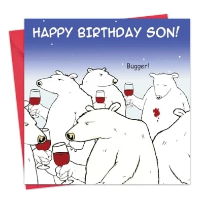 Twizler Funny Birthday Card with Polar Bear and Wine for Son Humour