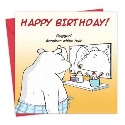 This card is left blank inside for you to create your own personal message A funny birthday card to make that special someone chuckle. The words on the front of the card reads – ‘Bugger! Another White Hair.’ Happy Birthday! Is also displayed on the front. Great card for a husband, wife, grandad, nan, dad, mum, uncle, aunt, son, daughter, brother, sister, boyfriend, girlfriend, partner, nephew, niece, grandson, granddaughter, friend, adult, grandpa, gramps, grandfather, nanny, nanna, grandma, granny or grandmother. Cello wrapped and comes with a matching coloured envelope Designed, printed and manufactured exclusively in the UK
