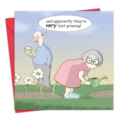 Twizler Funny Card with Man, Woman, Daisies and Gardening Blank Happy Birthday Humour Anniversary Fathers Day Mothers Retirement Good Luck