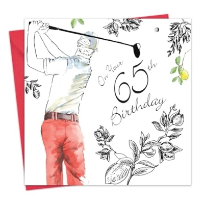 Twizler Happy 65th Birthday Card For Him with Silver Foiling & Unique Watercolour Effect Golf 65 Year Old Age Male