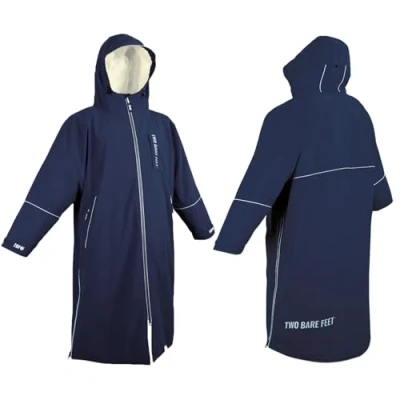 Two Bare Feet Hi Vis Equestrian Changing Robe Waterproof, Windproof, Fleece Lined Coat for Horse Riding & Outdoor Use (Marine Blue/Cream, Large)