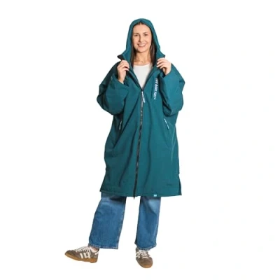 Two Bare Feet Weatherproof Long Sleeve Changing Robe and Mat, Waterproof, Windproof, Warm Sherpa Fleece Lining with Hood, Watersports, Swimming, Surfing, SUP (Medium, Sea Green/Sea Green)