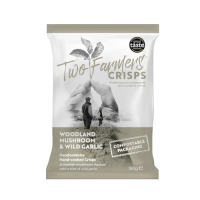 100% Plastic Free, Compostable packet Gluten Free Hand-cooked crisps using the best local ingredients Site run on renewable energy Woodland Mushroom & Wild Garlic 12x50g Packs