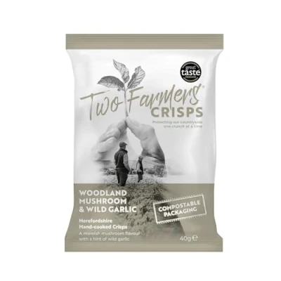 100% Plastic Free, Compostable packet Gluten Free Hand-cooked crisps using the best local ingredients Site run on renewable energy Woodland Mushroom & Wild Garlic 24x40g Packs