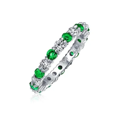 Two Tone Green Birth Month Color Stackable Eternity CZ Pave Cubic Zirconia Promise Ring For Women Sterling Silver 3MM
