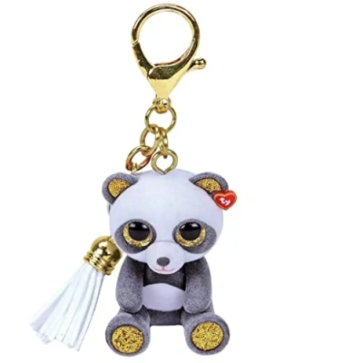Chi is a key ring in the shape of a panda This panda has gray and white fur and glittering golden eyes, ears and paws Decorate your bag or key ring with this cute boyfriend! With a white tassel that makes the key ring even more fun This product contains: 1 x TY - Mini Boo's Clip Panda Chi, Keychain - 9 CM, Manufacturer: TY