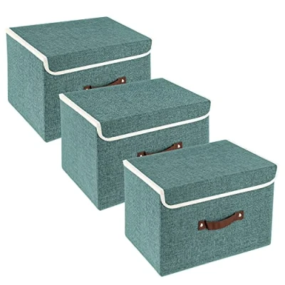 TYEERS Collapsible Storage Box with Lid, Fabric for Clothes, Wardrobe Storage, 38x25x25 cm, Set of 3, Aqua Deep