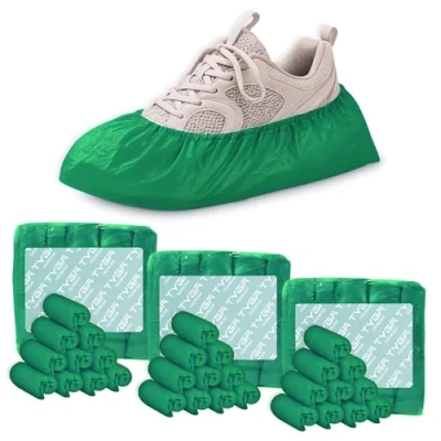 TYGA Shoe Covers, Embossed Waterproof Overshoes, Anti Slip Boot & Protectors for Floor, Carpet, Cleaning, Indoor/Outdoor Use, Pack of 300, Green